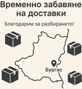 Уведомяваме Ви, че поради неблагоприятните метеорологични условия и усложнената пътна обстановка в района на Бургас и региона е възможно да има забавяния при доставката на пратки от и за региона. Полагаме максимални усилия да наваксаме закъсненията, спазвайки всички наложени ограничения.